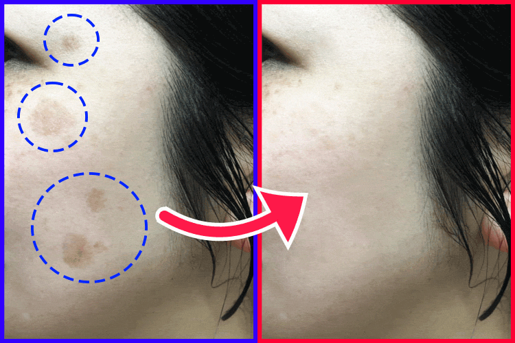 30代後半からシミが目立ち初め50歳にして顔中シミだらけ。常に厚塗りファンデでくすみ顔だったのが、たった1本で長年のシミ悩みが解消!周りから整形を疑われるんですが、これがシミケア美容液しか塗ってないんですよね(笑)